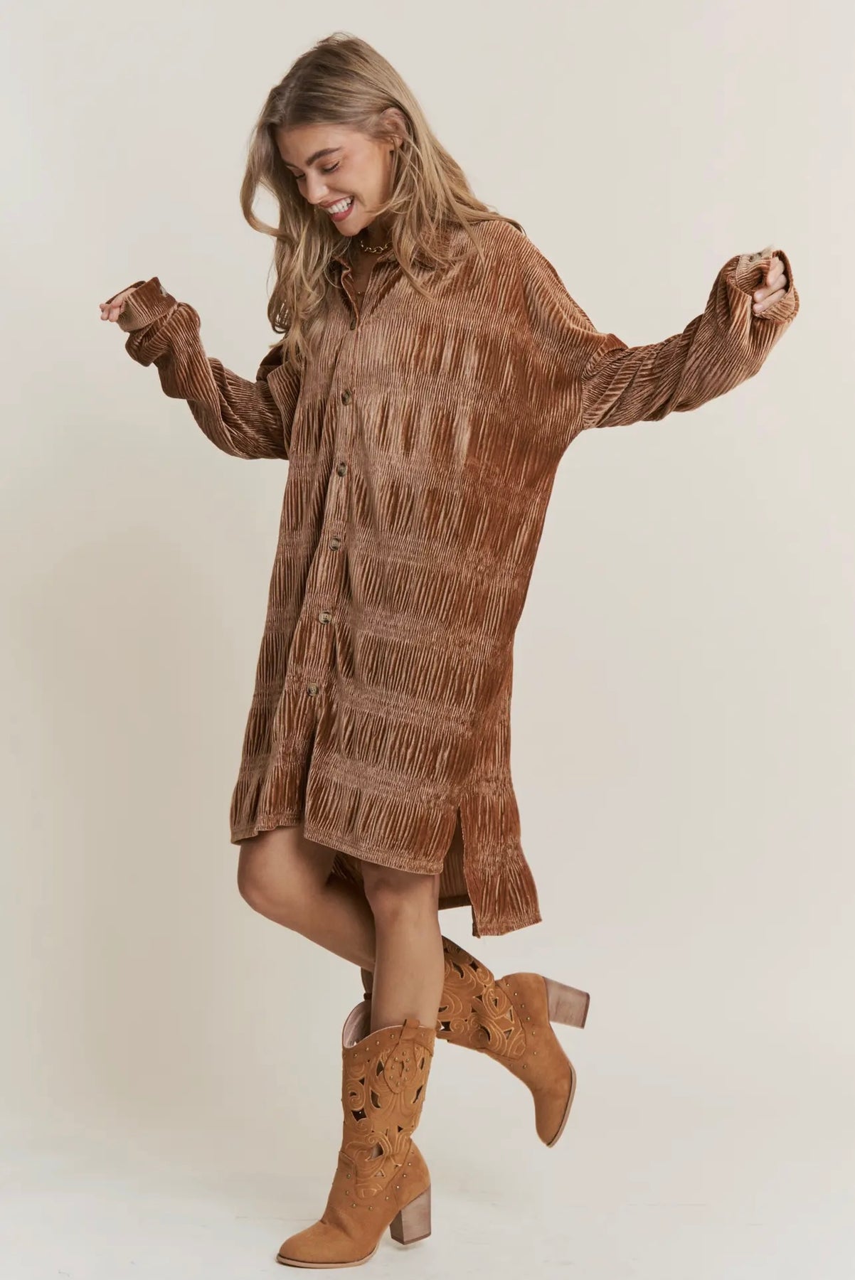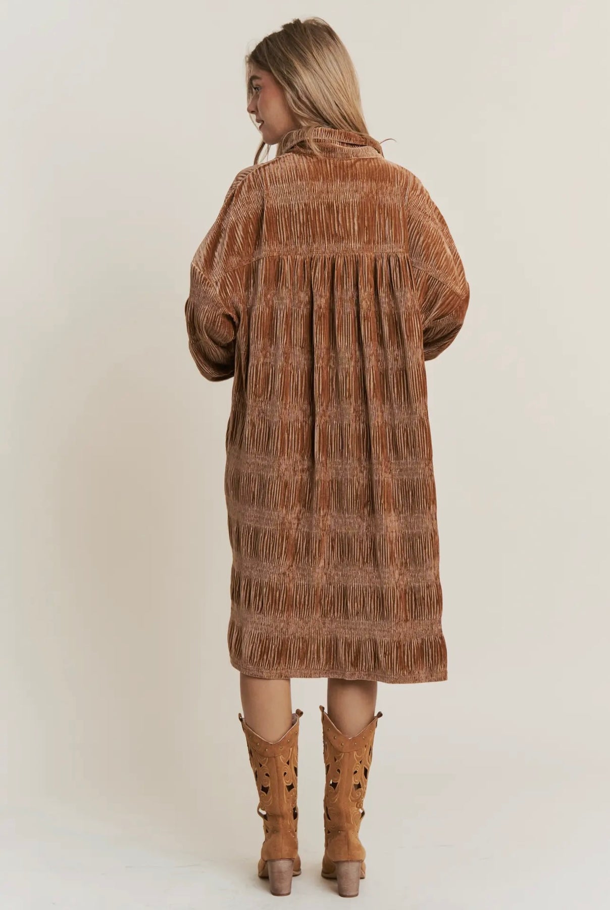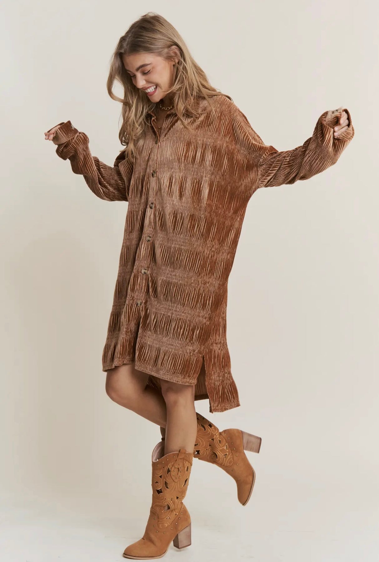 BUTTON DOWN VELVET SHIRT DRESS