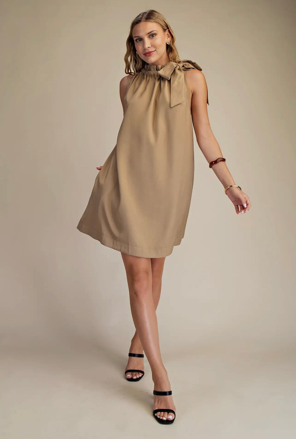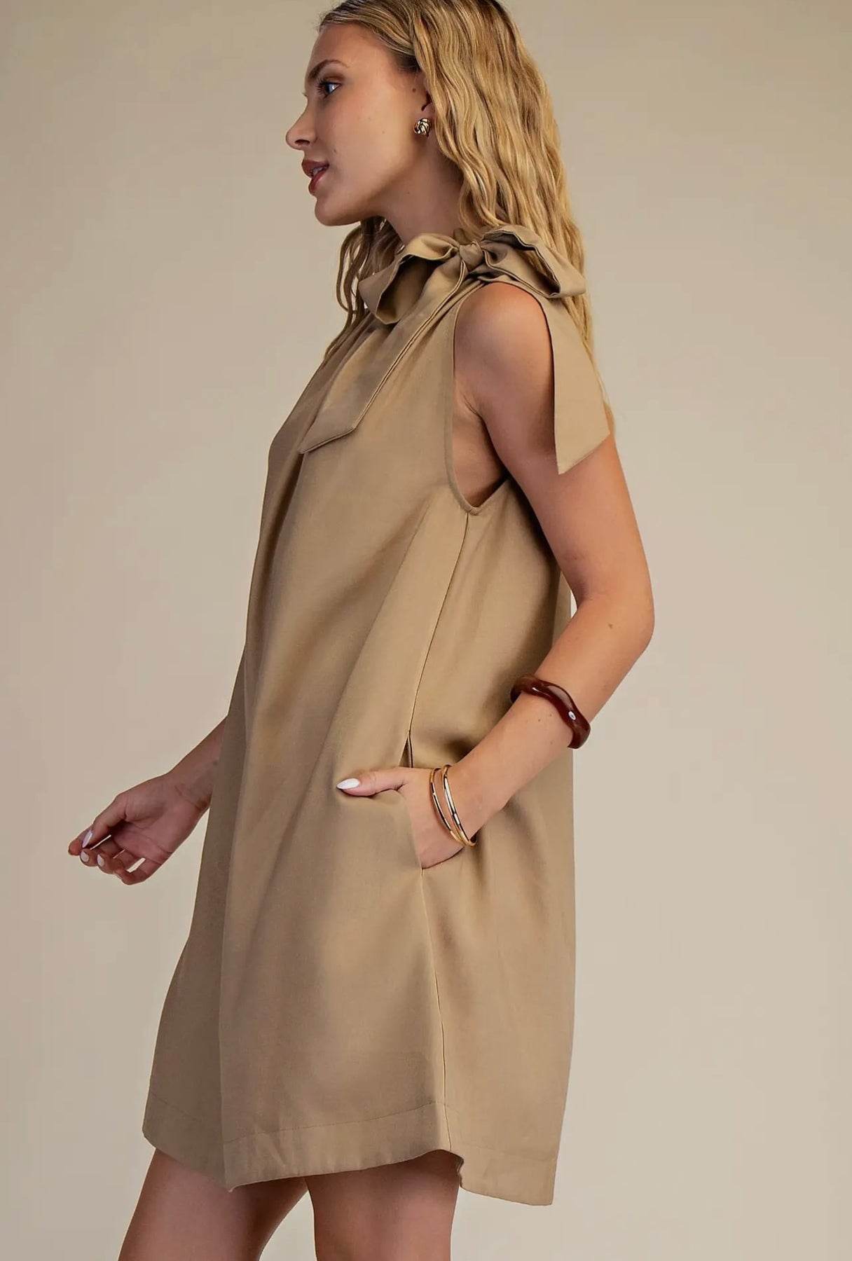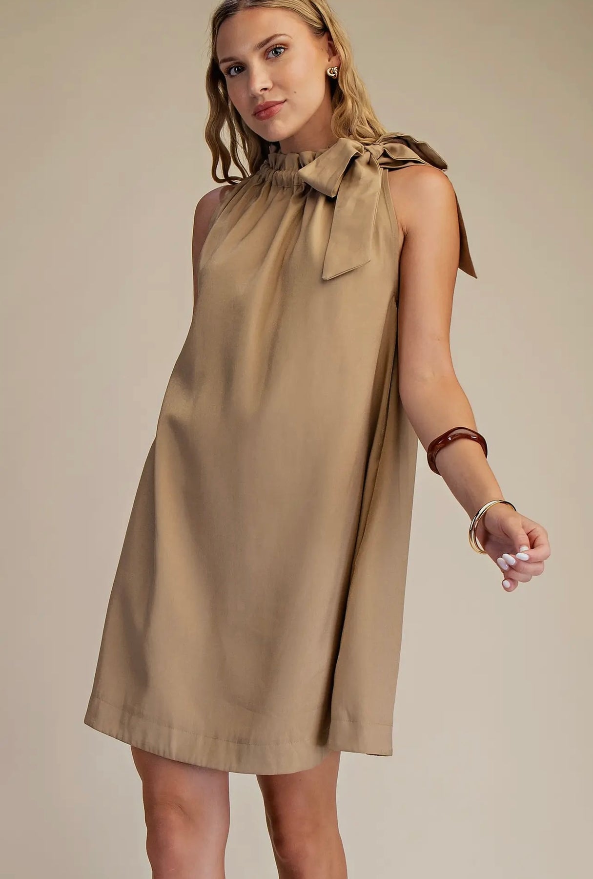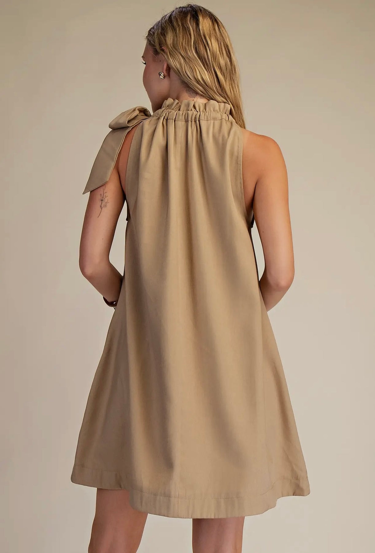 Ruffle Neck Tie Sleeveless Mini Dress