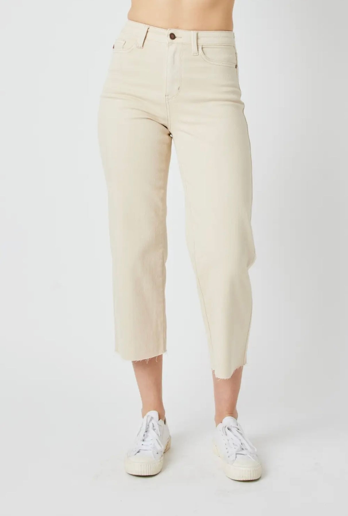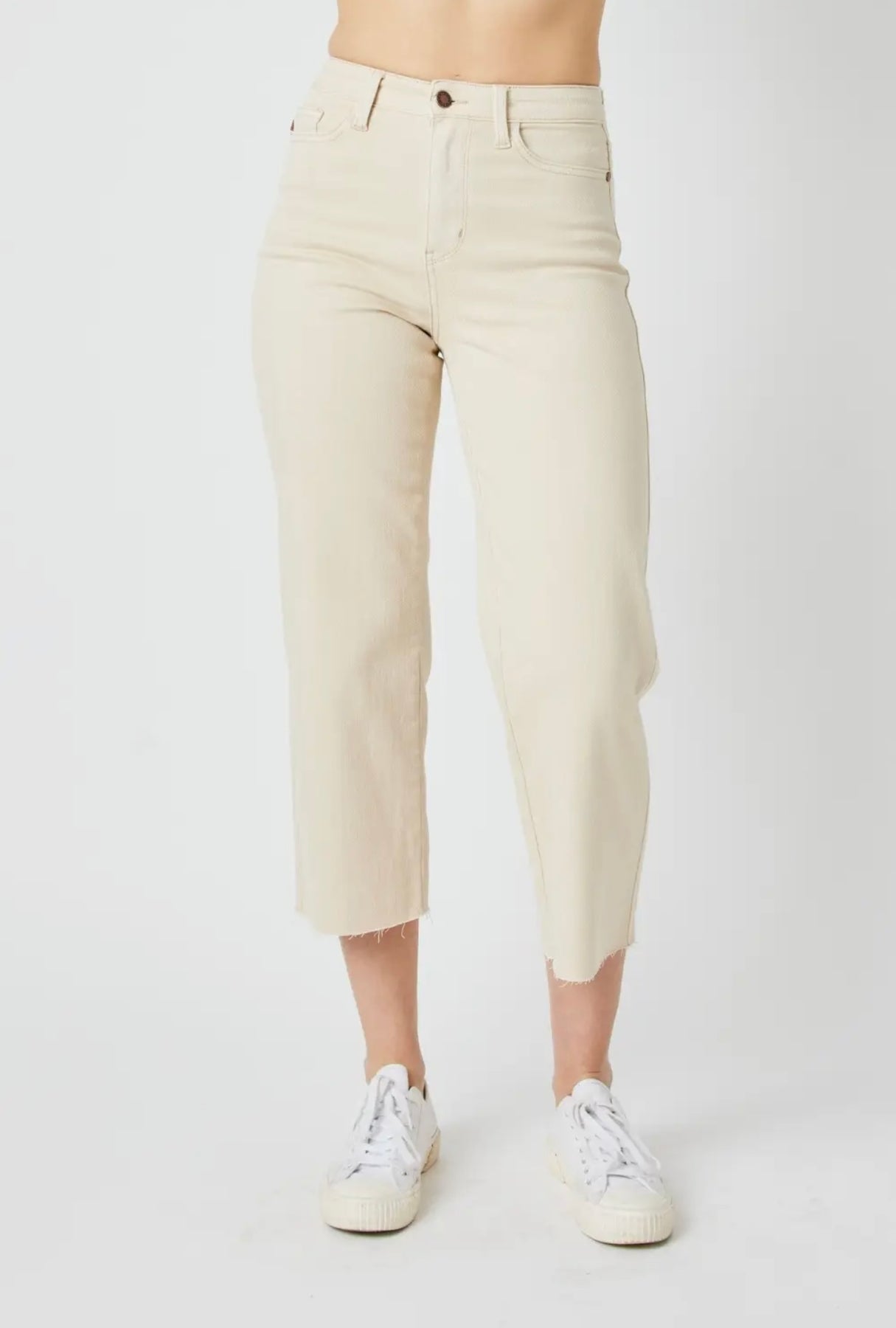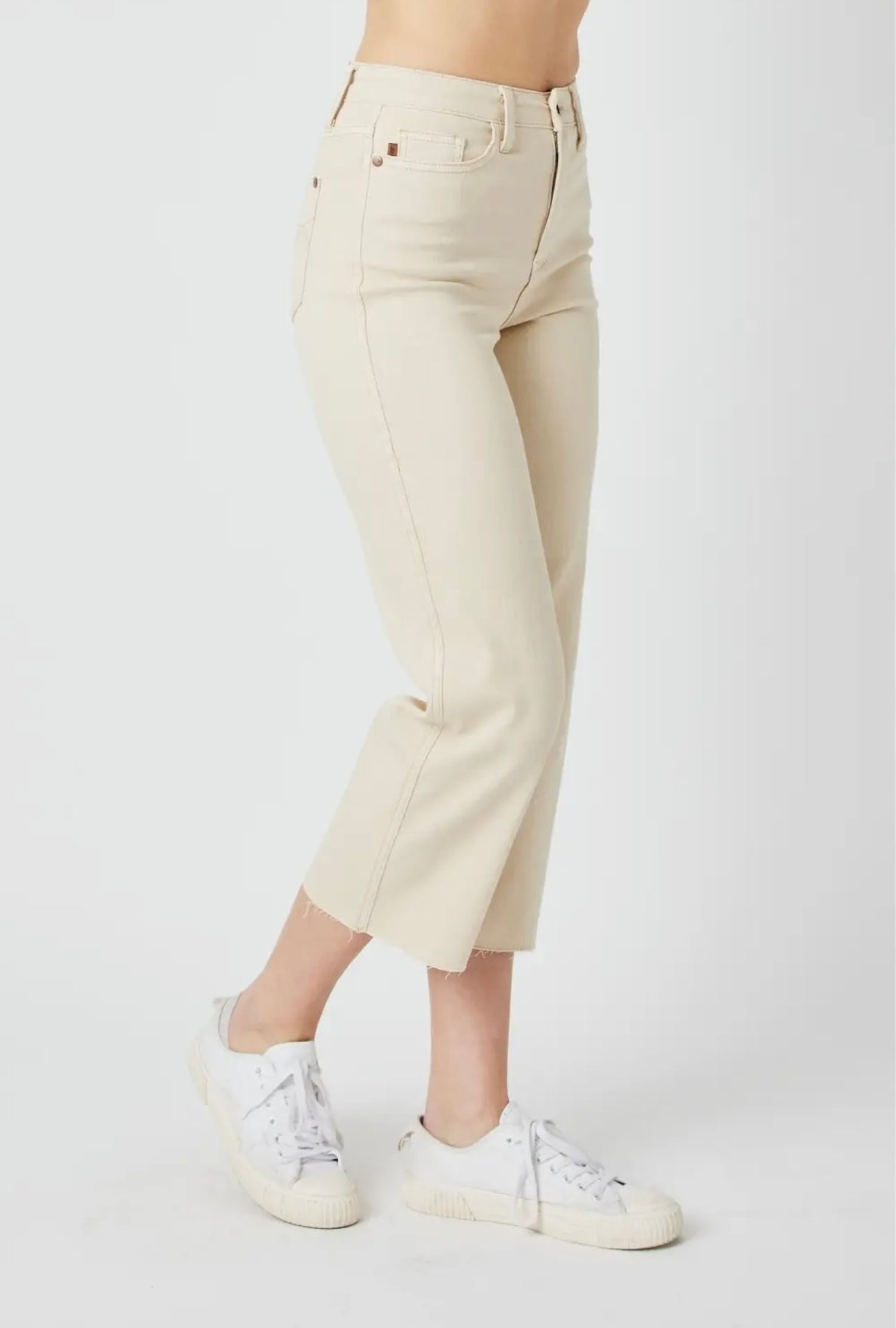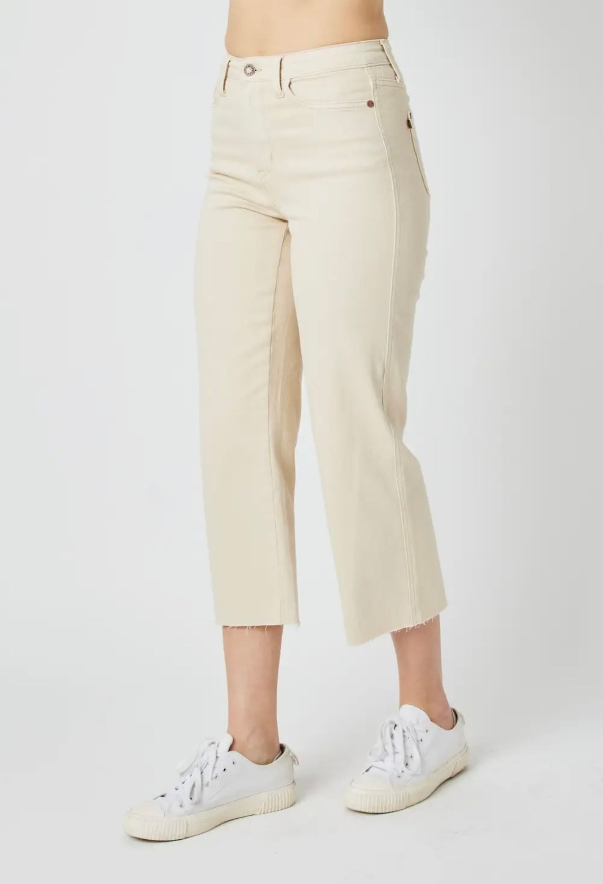 The high waist Garment Dyed Crop Wide jeans from Judy Blue Jeans are a contemporary addition to your wardrobe. These wide-leg jeans feature a high-waisted design and solid color, perfect for modern style enthusiasts. Made from a blend of 93% Cotton, 6% Polyester, and 1% Spandex, they ensure comfort and durability. Ideal for both outdoor activities and work, these jeans can be cared for with a simple hand wash.