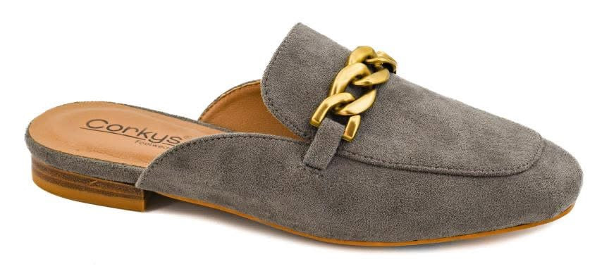 Elevate your everyday look with the Corkys Keepsake Mule Flats. Designed with a luxe faux suede upper and eye-catching gold chain detail, these slip-ons blend classic polish with modern flair. The low stacked heel and cushioned insole deliver all-day comfort, while the open-back design makes them easy to slide into and style with anything from denim to dresses.
