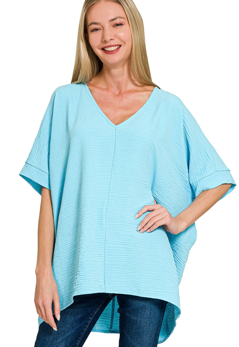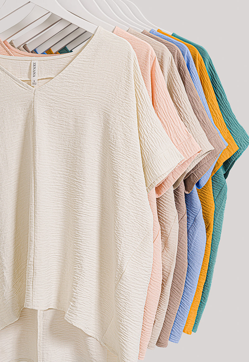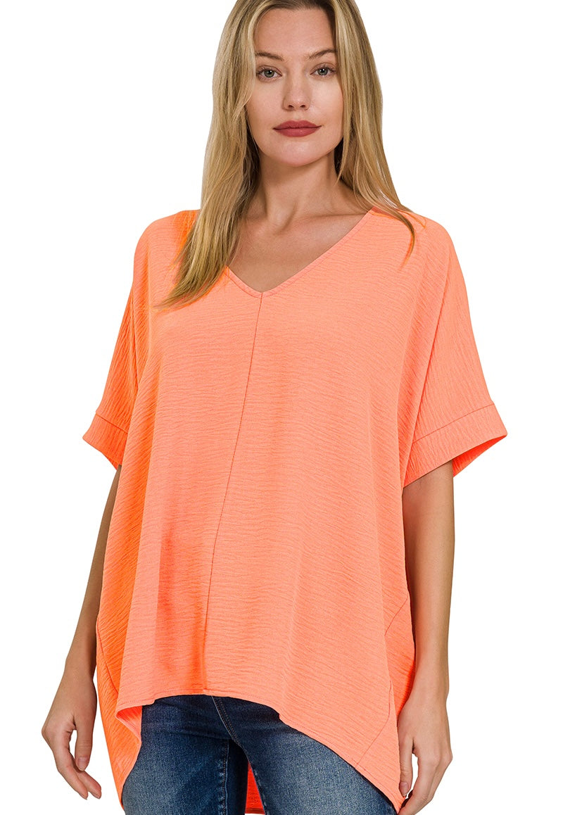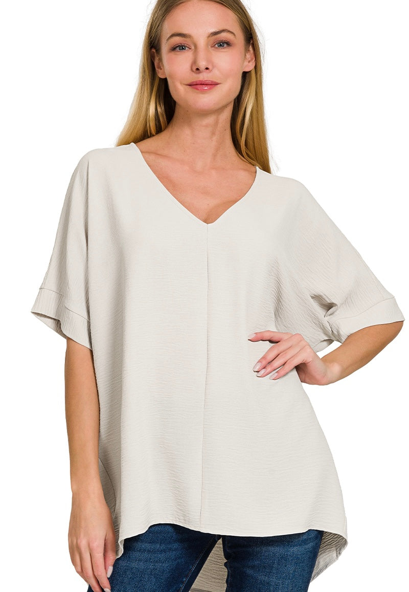 WOVEN AIRFLOW V-NECK SHORT SLEEVE TOP. OVERSIZED.