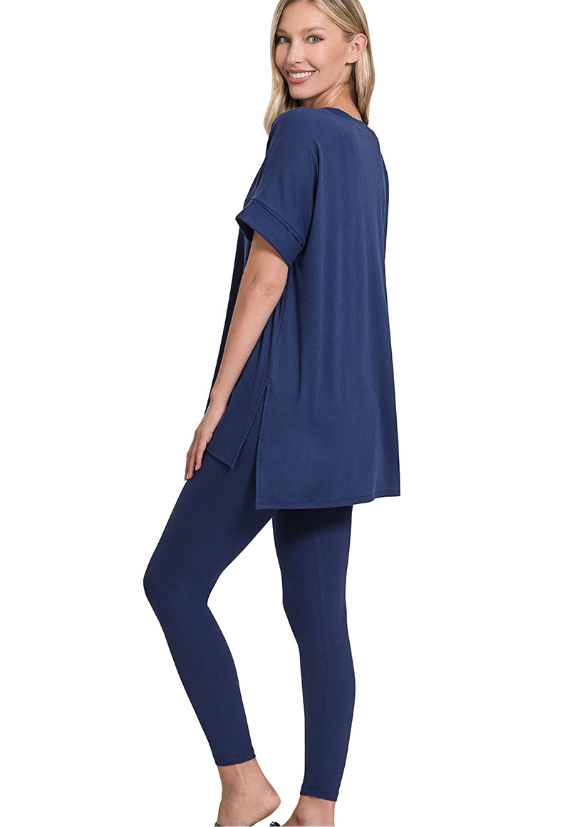 BRUSHED DTY MICROFIBER LOUNGEWEAR SET